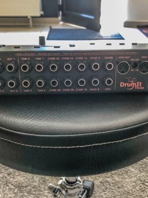 15 universal trigger inputs configured as kick, snare with rim, 4 toms with rim, 1 Hi-hat and 3 cymbals