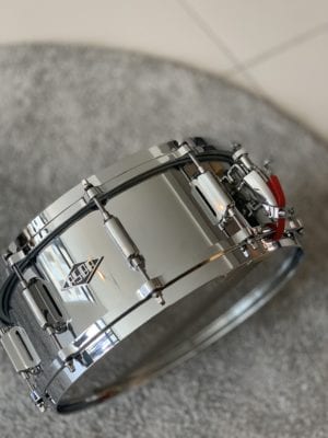 ASBA et l’acier, une histoire d’amour rendue célèbre notamment avec Christian Vander, fondateur et batteur du mythique groupe MAGMA. Cette réédition du modèle iconique « Révélation » 100% acier ASBA des années 70 le prouve bien. Cette caisse-claire, c’est un son hyper précis, un sustain très contrôlé, une amplitude de tunings infinie, ultra polyvalente, aussi à l’aise en concert qu’en studio. Le « steel » ASBA à l’état pur.