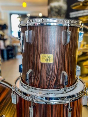 Un mastodonte cette batterie. Ce modèle rare 80’s, Signature Horst Link de chez Sonor est d’une beauté ravageuse avec son look Makassar Ebony Indonésien. Et quelle puissance, un son absolument énorme. Avec ses fûts 12 plis dans ce bois robuste, la frappe est pure, contrôlée, absolument ultime pour un gros son rock. Une rareté dans un excellent état, malgré quelques griffures sans importance dû à son âge. Restaurée au magasin pour notre plus grand plaisir…et le vôtre!